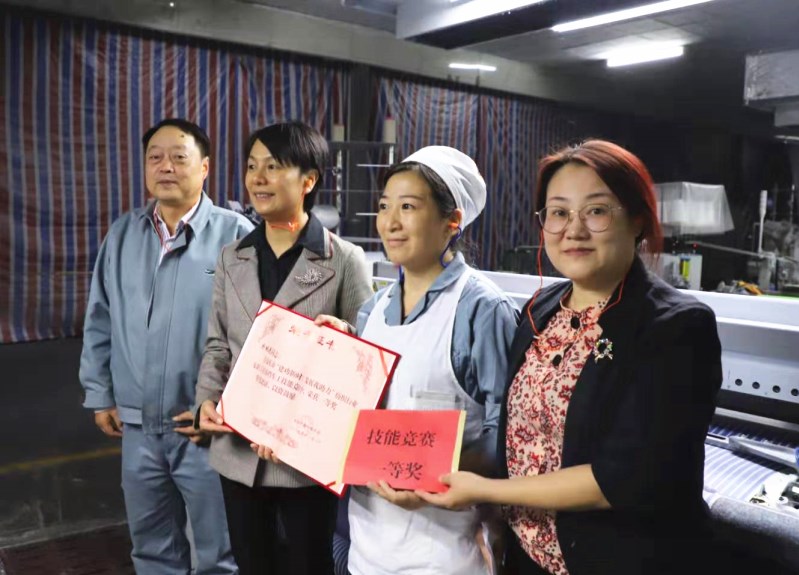 11月1日,市婦聯(lián)黨組書記、主席焦玲一行在集團黨委副書記、紀(jì)委書記、工會主席劉春西的陪同下來到華茂集團一分廠和織染公司,將“建功新時代、發(fā)展我助力”一等獎獎狀送進車間,送到獲獎?wù)叩氖种小?/p>